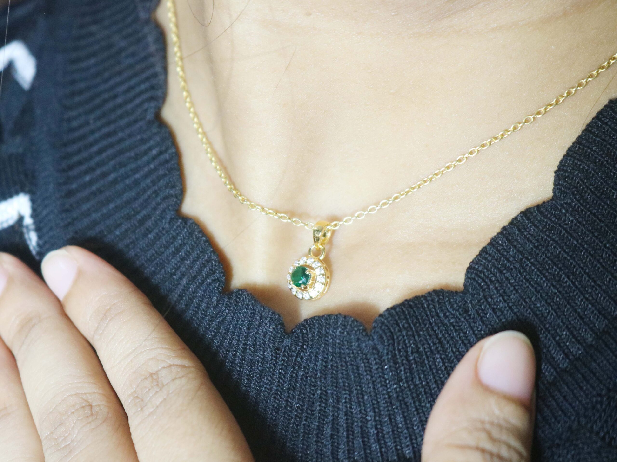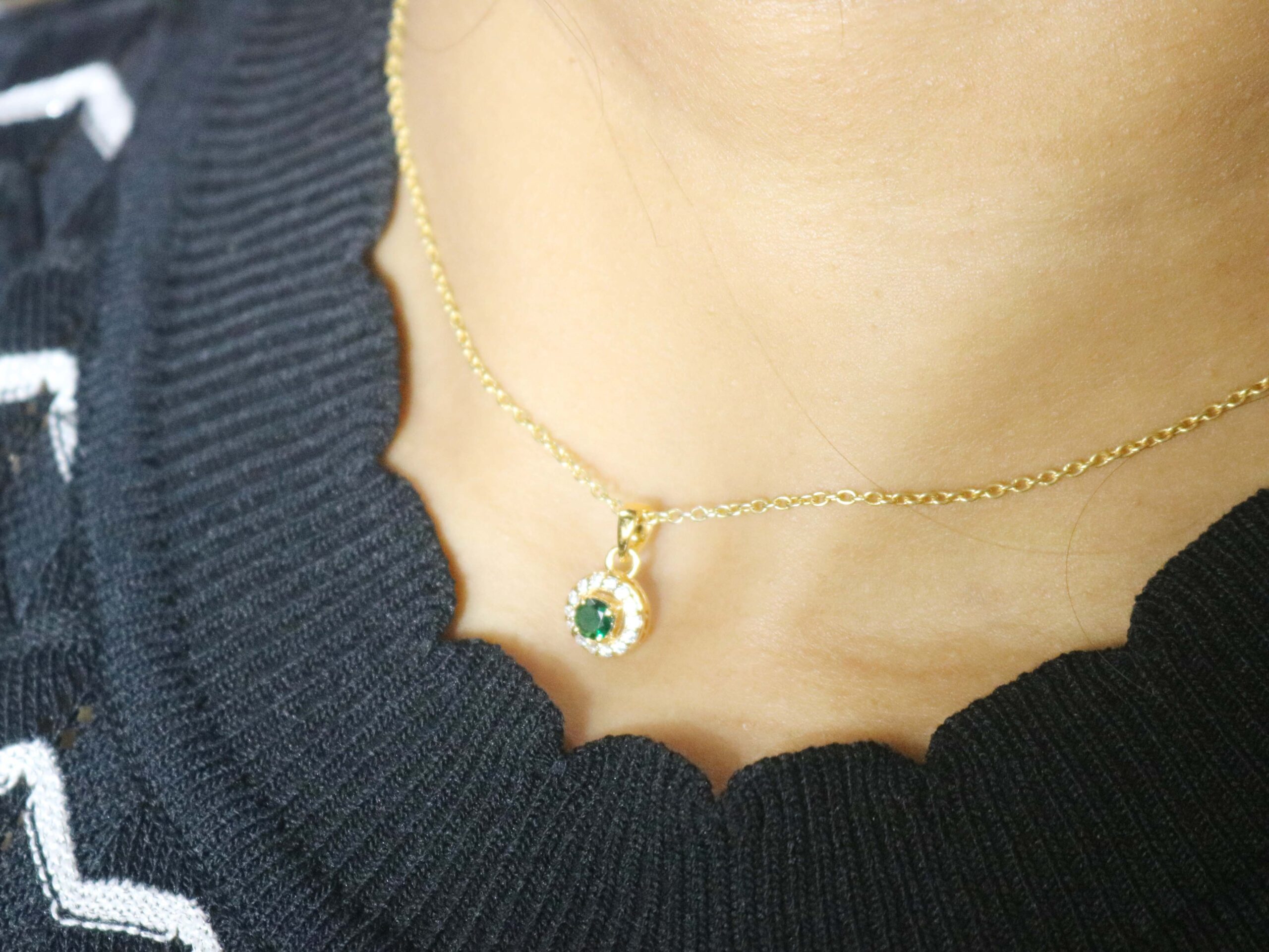Be the first to review “Emerald Diamond Dainty 14k Solid Gold Pendant Necklace – May Birthstone Necklace For Women”
